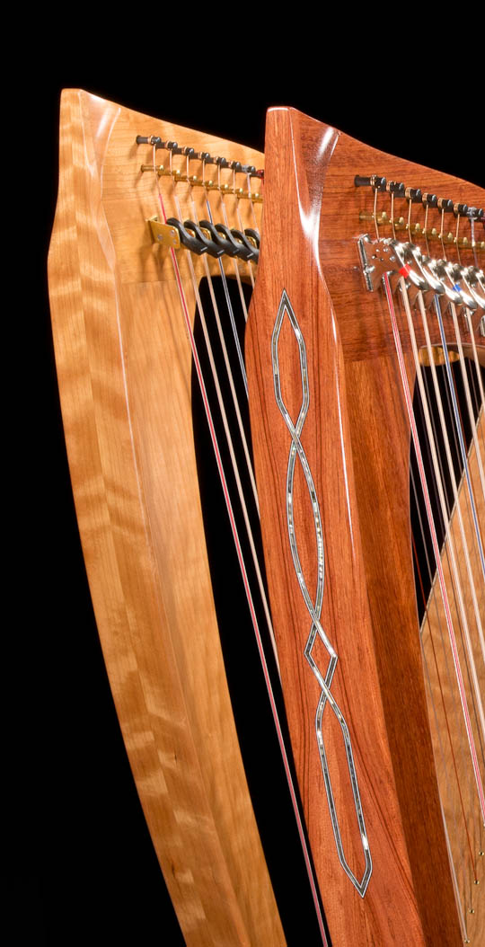 Dusty Strings has been taking harps to the show since 1988, when one of our long-time dealers, Sylvia Woods, first convinced us to go. In the initial years, we felt a little like wallflowers, it being mainly a pedal harp show and a bit intimidating for lever harp makers at first. (Imagine Ray and Sue’s surprise the first few times they heard our bubinga FH36S referred to as a “little harp.”) However, we firmly believed that Dusty Strings had something to offer the pedal harp world. After a few years, some stubborn persistence and a couple of curious and adventurous pedal harpists, our “little harps” started to get noticed.